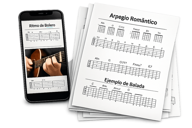 Recibirás el Cancionero de Baladas Latinas con 50 canciones, junto con 5 ebooks bonus que te ayudarán a aprender acordes, ritmo y técnica desde cero.